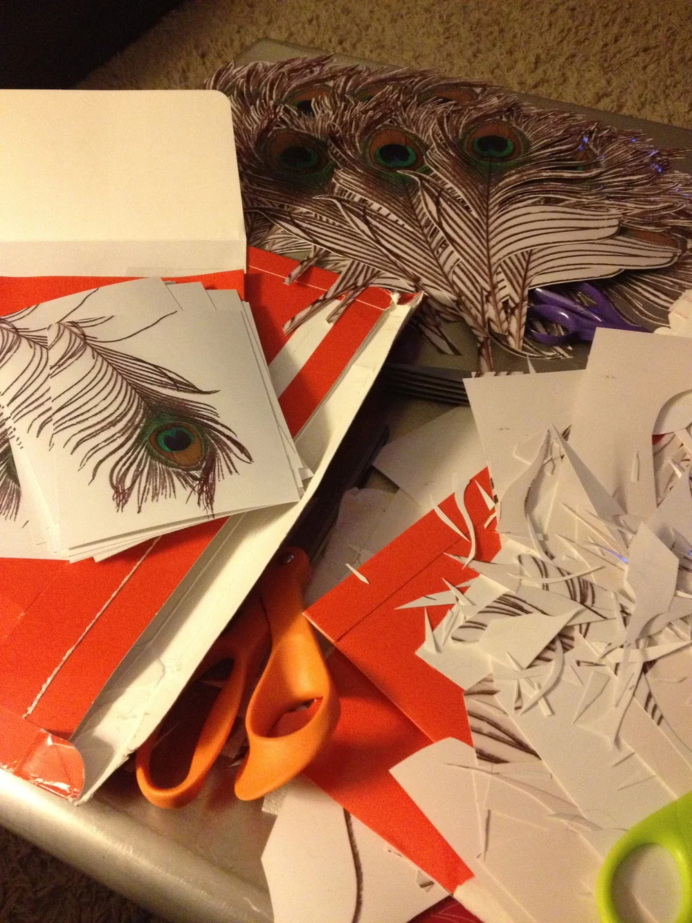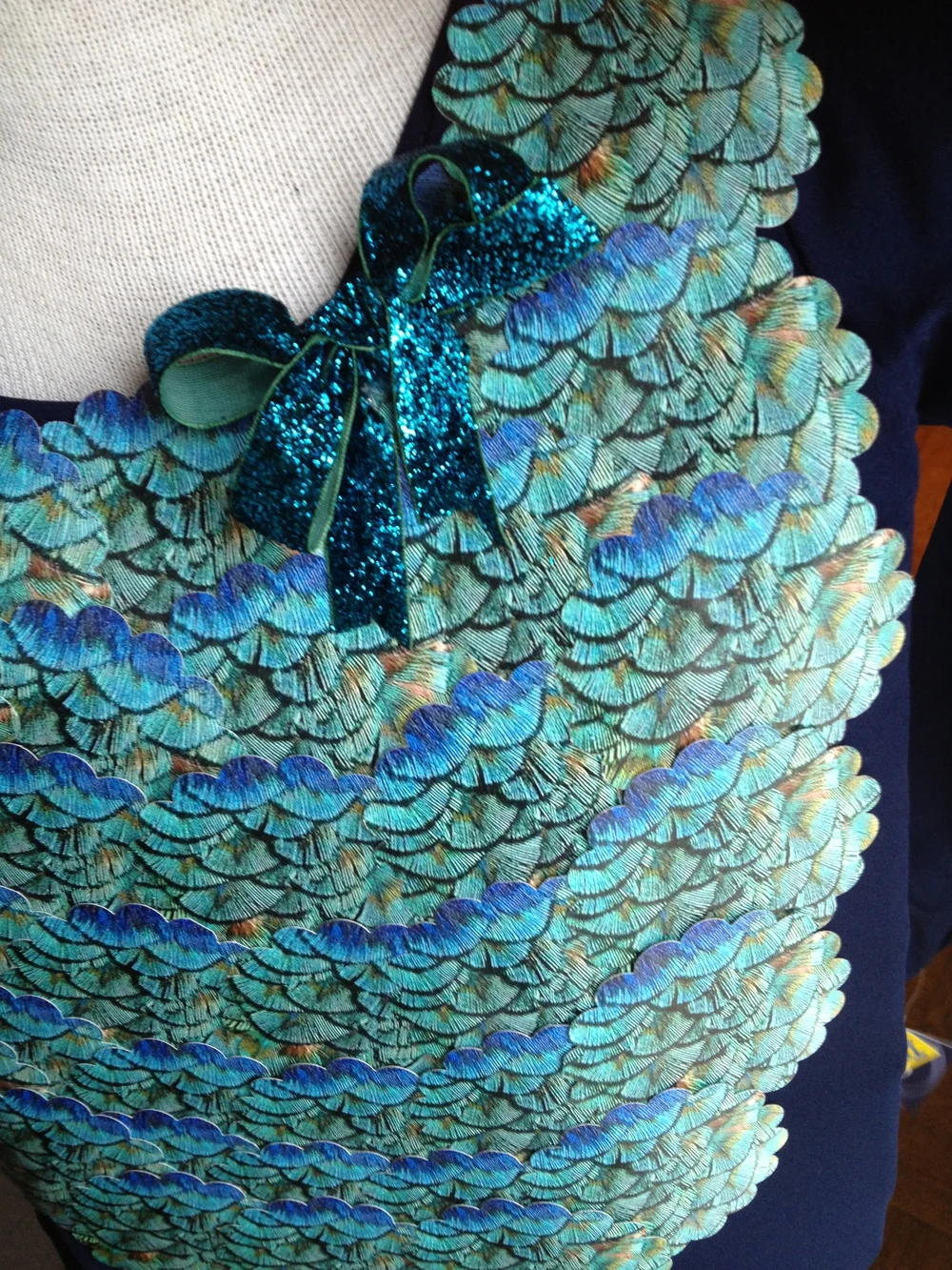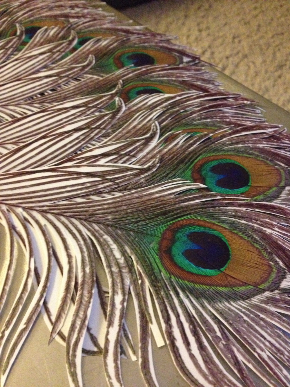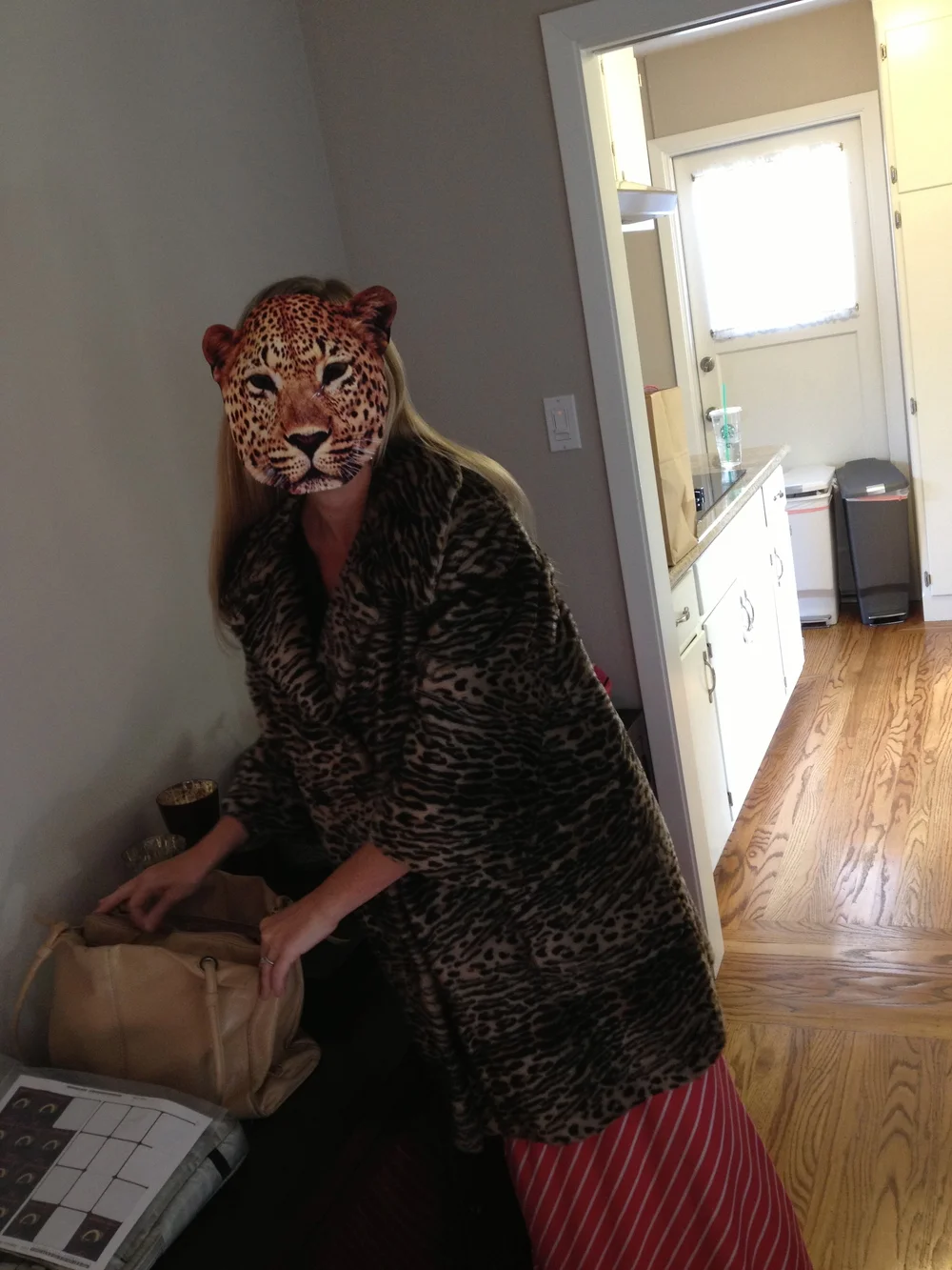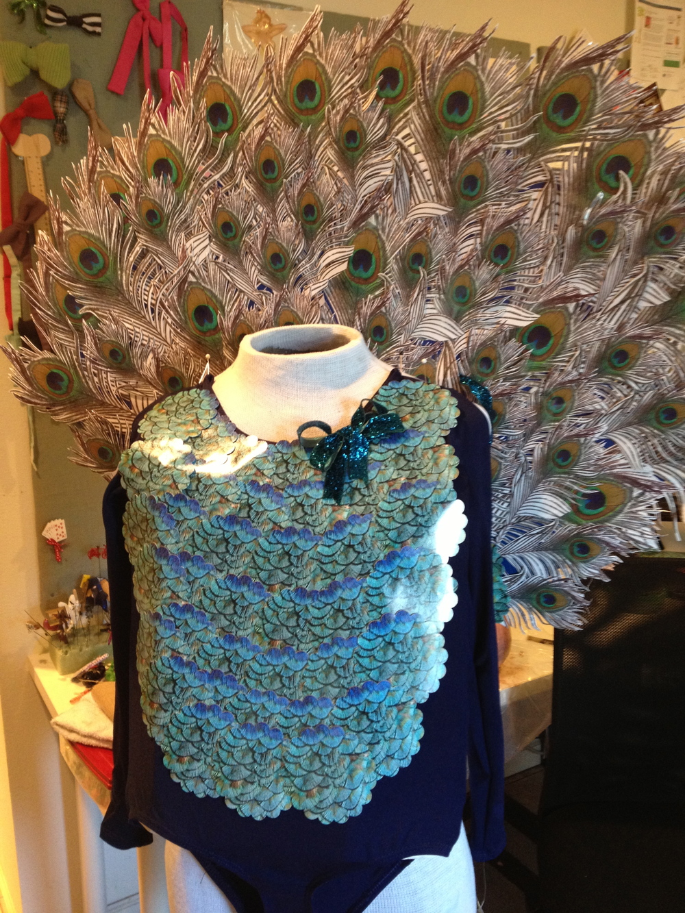 This was a two part holiday shoot that I worked on for Shutterfly. I hand cut every single peacock feather out of 8x10 prints and then punched out the bodice with 4x6 prints. Then I installed the feathers onto a piece of foam board and attached the punched pieces to Sicily's leotard. The leopard mask was something playful you could easily make out of a printed 8x10, which I loved with the faux fur coat.